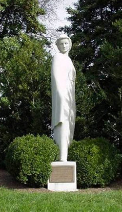 The granite statue of a nurse in uniform, sculptured by Frances Rich, honors the nurses who served in the U.S. armed forces in World War I, many of whom rest among the hundreds of nurses buried in the "Nurses Section."